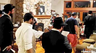 The Halachot governing Minyan require that all ten men assemble together in the same room. The Shulchan Aruch rules that someone standing outside the room of the Minyan may answer the Devarim SheBikdusha, such as Kadish and Barchu, even though he doesn’t count towards making the Minyan. This is on condition that there is no separation of garbage or putrid items that would serve as a barrier. The question arises as to whether someone praying in an adjacent room to the Minyan is considered as having prayed Tefila B’tzibur (communal prayer). This issue is discussed by Chacham David in his Halacha Berura. There he rules that as long as the person can maintain eye contact with the Minyan, he is considered a part of it. He cites the opinion of the Radbaz as quoted by the Hida in his Birkei Yosef and his Machzik Beracha that even if he cannot see the Minyan because his view is obstructed, nevertheless, he is still considered a part of it.