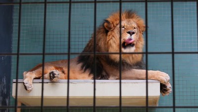 The answer is very simple. We are not scared of the lion, because there is a cage separating us. Thus, we stand there, flex our muscles, and take a selfie with a large smile…