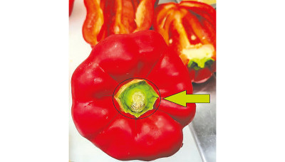 While research into this issue is ongoing, we recommend that consumers wash and scrub the pepper by hand or with a vegetable brush under a strong stream of water, and then remove the stem with some of the surrounding area, as illustrated in the photo below.