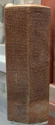The Taylor Prism is a detailed account of the conquests of the Assyrian king Sennacherib. Archaeologists have actually discovered three identical copies of this prism (the others are the Jerusalem Prism and the Oriental Institute Prism), calling the three “Sennacherib’s Annals”. Sennacherib features prominently in the Tanakh. He was the one that destroyed the Northern Kingdom of Israel, and nearly succeeded in taking the Southern Kingdom of Judah, too, were it not for a divine miracle, as described in II Kings 18-19.