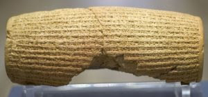 Much of this is attested to in the Cyrus Cylinder, discovered in 1879. The Cylinder describes the reign of King Cyrus, and in one place explains how he freed many indigenous peoples, allowing them to return to their ancestral homelands and rebuild their old temples: “… I returned the images of the gods, who had resided there, to their places and I let them dwell in eternal abodes. I gathered all their inhabitants and returned to them their dwellings.”