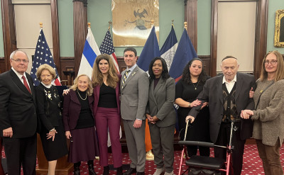On the evening of January 29, 2025, the New York City Council held a poignant event to commemorate the 80th anniversary of the liberation of Auschwitz-Birkenau. This solemn occasion, marked by reflection, remembrance, and a renewed commitment to combating hate, was coordinated by Pesach Osina of City Council Speaker Adrienne E. Adams office, and Jewish Caucus Chair Council Member Eric Dinowitz. A host of esteemed elected officials attended. The event was made possible through the partnership of Yad Vashem, The World’s Holocaust Remembrance Center, and the UJA Federation of New York.