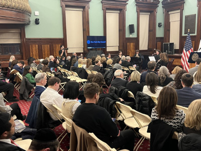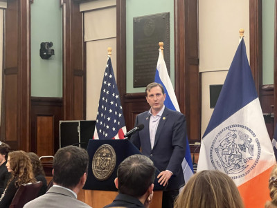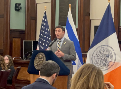 Council Member Julie Menin, a daughter of Holocaust survivors, delivered an emotional speech that resonated with many in the room. Menin shared a personal story of her family’s survival and the painful loss of loved ones, including her grandfather, who perished in the Holocaust. She emphasized the importance of preserving these stories for future generations and shared her own project at the Museum of Jewish Heritage, where 85,000 public school eighth graders are being brought to learn about the Holocaust.
