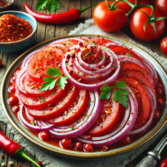 Tomatoes, onions, chili, vinegar. Simple. Sharp. Classic.
