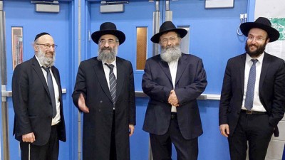 Harav Hagaon Yitzchak Yisraeli, Chief Rabbi of the Bukharian Jewish Community and Rabbi Emmanuel Shimonov, Rabbi of Cong. Bet Gavriel, enjoying their visit to Be’er Hagolah, where they observed classes in action. Harav Hagaon Yitzchak Yisraeli fondly addressed and interacted with the students.