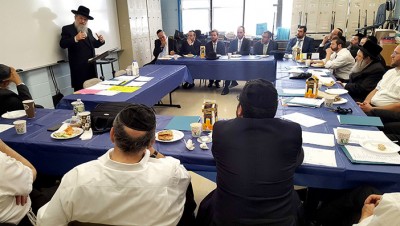 The Pre-Labor Day start to the school year kicked off on Wednesday August 29, with the annual rebbe meetings and workshops. This year, the Yeshiva was honored to have Rav Noach Isaac Oelbaum address the rebbeim. Rav Oelbaum shared a beautiful S’forno that, just as a father can love and support each child’s different needs because the child knows that his father loves him, so is the responsibility of the rebbe, that the talmid should feel that the rebbe cares for him, is watching out for him, and takes pride in him. He shared a story from a talmid of Rav Shimon Shkop, that after the war, the talmid expressed that the only memory he had from this giant in Torah was the love his rebbe showed him. Rav Oelbaum also discussed the importance of being m’chaneich our talmidim with simchah, and ensuring that the simchah in the talmidim’s lives come from the right places. Rav Oelbaum gave the rebbeim a brachah for hatzlachah with their avodas ha’kodesh.