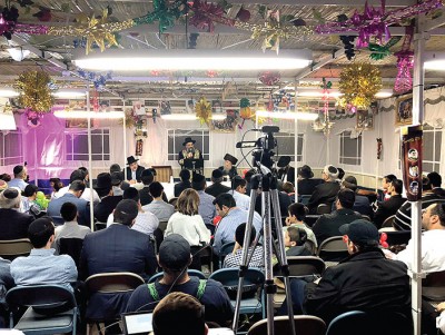 73rd Avenue and Main Street was the epicenter of a groundbreaking Simchas Beis Hashoeva Thursday evening. Congregation Od Yosef Chai in conjunction with Chazaq presented a memorable event in their spacious succah that no rain would dare prevent. Chief Bukharian Rabbi Rav Yitzchok Yisraeli alongside Rabbi Boaz Bardea joined community Rabbanim including Rav Noach Isaac Oelbaum, Rav Ilan Meirov, Rav Menashe Tzadka, Rav Michael Cohen and Rav Refael Zavulunov among others. Wise words of introspection on the holiday of Succot were delivered by the respected Rabbanim. A note of thanks to Yitz the Great for keeping the youth entertained with his unique balloon designs. Afterwards, the crowd took to the streets for joyous singing and dancing headlined by Mizrachi singing sensation Avi Peretz!