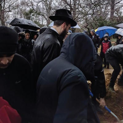 Between his roles as a mara d’asra, a Chabad shaliach, and officiating at funerals, Rabbi Mendelson agreed that there are many funerals that take place without a minyan. After learning that there is no son to recite Kaddish, many of the mourners approached him asking for her name. Others offered to donate funds for the funeral. Many women were also in attendance to pay respect to a survivor. “Of course I was going to come. If it had been nice weather, more would have come,” said one mourner. “But when I saw it was raining I knew I had to come.”