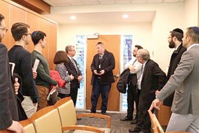 The tour also highlighted fully renovated private rooms on the maternity floor, an expanded OB/GYN surgical staff with special expertise in breast surgery, cancer surgery, uro-gynecology, as well as an expanded neurology staff. Dr. Jacobs also showed us the newly added Prayer Meditation Room, where patients and their families have access to siddurim and tefillin to help maintain a strong religious connection at all times. The tour concluded on a good note; both the guests and hospital representatives felt closer to the hospital’s stated goal of excellent service tailored to its community.
