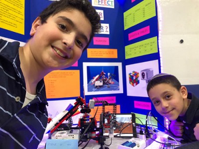 On Tuesday, March 26, Yeshiva of Central Queens’ sixth grade students participated in the annual STEM Fair. The winners will move on to the Inter-Yeshiva competition against students from several other schools. Students chose a topic in science, engineering or technology; collected data, researched and analyzed their information, resulting in an array of well thought out, interesting projects that they presented to YCQ faculty and students. Sarah Owadeyah, said, “my topic was Twin Telepathy. I did it with my twin sister and it was very interesting to learn about telepathy and to see how it works.” The first-place winners Joshua Noah and Aryeh Rozic did a project on a robot that can sense color and complete a Rubix cube; Esther Nazarov and Julia Mushayev, second place winners did their project on Extracting DNA from a strawberry. Esther said, “Learning about strawberry DNA has been a great experience because I learned facts and one of them is that strawberries have eight different types of chromosomes.”