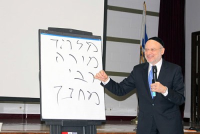 Following the meetings, the Parent Teacher Organization (PTO) held their annual Pre-school Bash, a program geared to give incoming preschool students and their families a chance to get to meet other children and their teachers and morot that they will be in class with. This is the second year the event was held with attendance of around 300 people. Each preschool class was given a color and the students received name tags in those colors and sat at tables with their class color. The student made a project donated by the Jewish Heritage Museum and heard about the activities and learning experiences they will have at school. The idea behind this program is to help the young children transition more smoothly into the yeshiva setting.