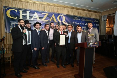 On Wednesday, December 4th, the Chazaq organization celebrated their 13 year anniversary with a Gala Dinner at the Leonard's Palazzo in Great Neck telling the capacity audience that “now we will take upon ourselves greater responsibilities to take the community to even greater heights.''