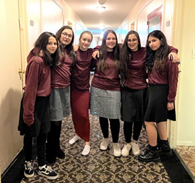 After candle lighting, the girls joined together at the shul for mincha and Kabbalat Shabbat. There was a great feeling in the shul with everyone davening together. During the Friday night seudah, divrei Torah were given by Tehila Kafash, Maytal Gigi, and Eva Bokhour. After dinner, the girls gathered in a circle and sang zmirot. After benching, inspirational speaker, Michal Horowitz spoke on the topic, There’s No Such Thing As “I Can’t” Accepting and Embracing Our Unique Abilities where she discussed what life challenges she faces considering her loss of her hearing. The eighth-grade girls then entertained the other students, staff and chaperones with creative skits where they mimicked some of their teachers keeping the crowd laughing and relating to the performers. The evening ended with the Battle of the Classes competition. The girls then settled in to their rooms for a few hours of games, laughter, and boding before lights out.