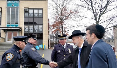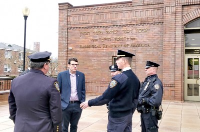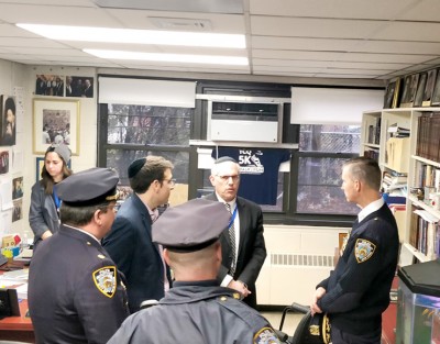 In light of the recent uptick of anti-semitic events in New York, Assemblymember Daniel Rosenthal advocated for additional resources for local synagogues and schools from the NYPD. The Assemblyman visited Rabbi Mark Landsman at the Yeshiva of Central Queens, Rabbi Yoel Schonfeld of the Young Israel of KGH as well as leadership of Yeshiva Chofetz Chaim along with Chief Barrere of NYPD Queens Borough Patrol South and the Commanding Officer of the 107th Precinct.