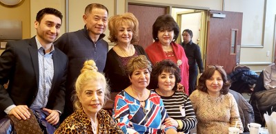 Last year QJCC celebrated its 50th year of service and it continues to welcome younger activists in the community. At this year’s breakfast, Nussbaum administered the oath to four young Bukharian Jewish professionals joining the QJCC Board: David Aronov, Manashe Khaimov, Emanuil Kalendarev, and Victoria Zirkiev. They were offered heartfelt congratulations by Board Members Svetlana Levitin and Rabbi Yaniv Meirov, who were pleased to see more Bukharian Jews taking an active role in the larger Jewish community around them. At the breakfast, Rabbi Meirov was also promoted to an Officer within the QJCC.