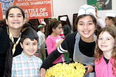 On Monday and Tuesday, February 10 and 11, the Yeshiva of Central Queens Junior High School 6th-grade girls prepared and hosted a Tu B’Shevat Shuk. A shuk is an outdoor market in Israel. The girls decorated the multi-purpose room at the Yeshiva to make it look like a shuk in Israel. There were different kinds of foods such as pickles, olives, candy, dried fruits, baked goods, and vegetables for the different brachot. The younger grades had passports and were able to purchase the items with the printed shekels they were given from the ‘bank’.