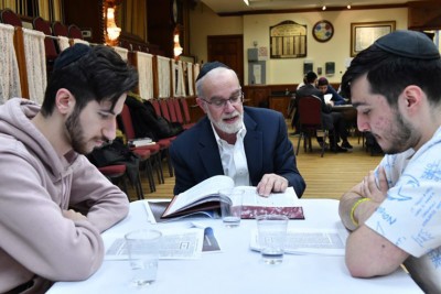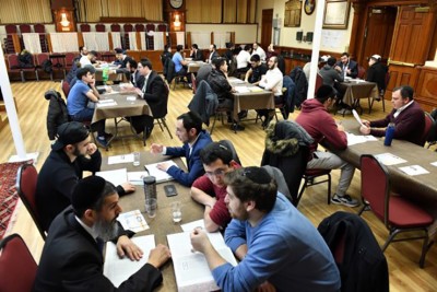 The spirited sounds of chavrutas engaging in Torah study filled Beth Gavriel Bukharian Jewish Center when Emet Outreach debuted its new TorahConnect program for men. After months of planning and anticipation, the room was transformed into an animated beit midrash as almost 70 men joined together for learning and achdut.
