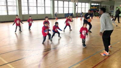The league operated Sunday mornings in a special six-week clinical program for kindergarten through second grade then in the afternoons on Sunday for third and fourth graders. Their program began with clinics and culminated in four competing teams. The kids wore their authentic jerseys proudly and picked up new techniques to improve their game.