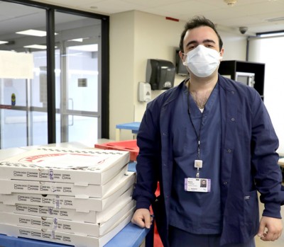 On Friday, April 17th, the ABA Health Committee (ABAHC) delivered 160 kosher pizza pies from local kosher pizzeria Benjy’s Pizza in Flushing, NY to feed the nearly 800 daytime healthcare workers at LIJ-Forest Hills Hospital as part of their recent initiative entitled Food for Our Heroes. Additional meals will be provided next week as well, as donations continue to accrue.