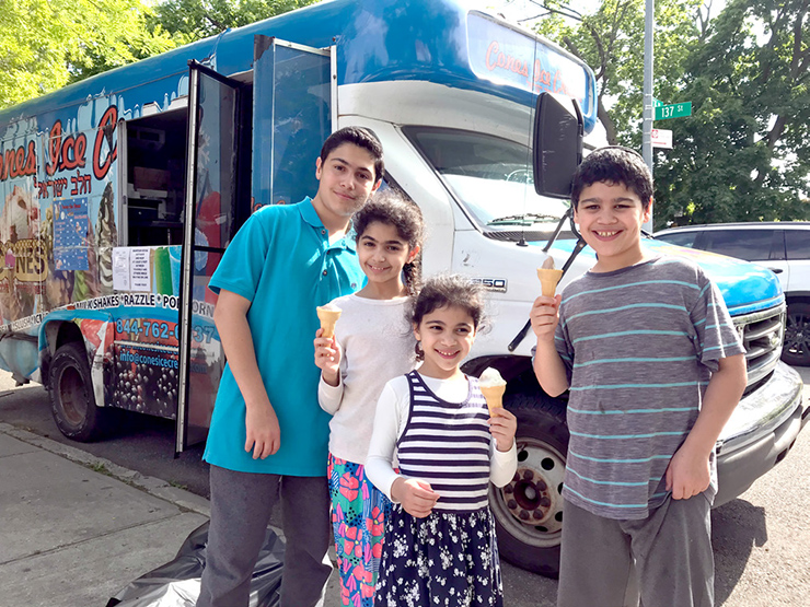 Children of Kew Gardens and Kew Gardens Hills were treated to a special treat in honor of Rosh Chodesh Sivan this past Sunday afternoon. The Klein’s ice cream truck came to town, serving delicious cones to neighborhood kids. The first stop was at the Kew Gardens Synagogue Adath Yeshurun (aka The Big Shul), where families lined up in an orderly fashion according to their last name. Then, three stops were made in KGH: first at Young Israel Queens Valley, then in front of Yeshiva of Central Queens, and finally in front of the Queens Valley Playground (better known as the Shabbos Park), at the corner of 76th Avenue and 137th Street. Children and parents alike social distanced in a remarkable fashion, making a true kiddush Hashem as they formed lines patiently awaiting their turn to meet the ice cream man! The special delicacy was sponsored anonymously to bring cheer to the children stuck at home most of the week in quarantine. Mi K’amcha Yisrael!