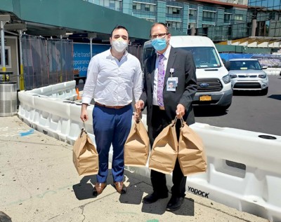 On Thursday, June 25, 2020, the Alliance of Bukharian Americans' Health Committee made breakfast and lunch deliveries to North Shore University Hospital in Manhasset of 40 meals each in collaboration with the hospital's Chaplaincy Director Rabbi Dr. Hillel Fox. This is yet another delivery in their Food For Our Heroes initiative. The local restaurants involved in supplying the meals were Bagel Boss of Queens in Flushing, NY and Laffa Bar and Grill in Hewlett, NY. They are set for a second delivery on Thursday, July 2, 2020. Tax-deductible donations are currently being accepted to support the initiative at http://gofundeme.com/f/v8br2q-food-for-our-heroes.