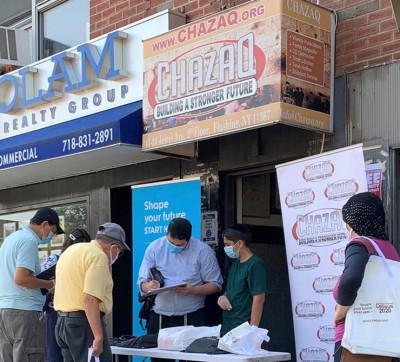 The Chazaq Organization, in conjunction with the office of the mayor and the office of the Queens Borough President, spent the morning of August 10th distributing roughly 10,000 masks to members of the Queens community in front of their Jewel Avenue headquarters in an outstanding giveaway event. To promote a green environment, the hundreds of participants were also treated to reusable bags sponsored by Census2020. Everyone was educated on the importance of filling out their household’s census forms to ensure no funding is lost.