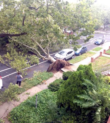 The aftermath of Tropical Storm Isaias was felt throughout New York City last Tuesday, August 4th. Twigs, branches, and other debris lay scattered across city streets. Larger tree limbs of decimated oaks, Norway maples, and catalpas were sheared off longstanding trees, landing atop parked cars and against homes from tree-toppling winds; over 2,000 trees fell throughout the city, and over 210,000 families were still without electricity as nightfall arrived.