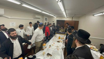 The bochurim and rebbeim of Midrash L’Man Achai of Queens recently had the awe inspiring privilege to visit The Kaliver Rebbe in his Williamsburg, Brooklyn beit midrash. The experience was one the talmidim will hold dear. Each boy and staff member had the chance to greet the Rebbe. All in attendance also had the chance to hear words of inspiration from the Kaliver Rav, son of the revered Rebbe and Reb Moshe Grunhut, a dear friend of the yeshivah.