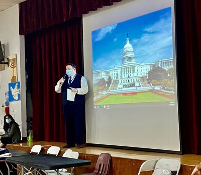 Ms. Simanowitz, JHS administrative assistant and organizer of the program, spoke about her father, Assemblyman Michael Simanowitz who was a first responder in the attacks. He later passed away from cancer in 2017. He was a great friend to YCQ and the entire Kew Gardens Hills community. She said, “Even though the events of 9/11 happened 20 years ago, the country and the world are still feeling the effects of it today. So many lives were lost that day, and we continue to lose more to 9/11 related illnesses each day. It’s so important to remember the innocent people who were lost and the heroes who sacrificed so much more than we could have ever imagined just to try and help.”