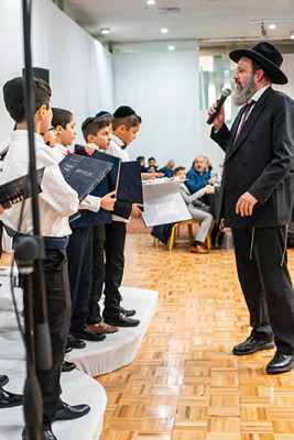 On Sunday November 7th, parents and staff from Yeshiva Sha'arei Zion joined together at Beth Gavriel of Valley Stream to celebrate the Hatchalat Gemara of the 6th Grade Boys. The event was attended by over 250 participants including many renowned Rabbanim and notable educators. The program opened with a series of moving tunes, practiced and sung by the boys. Rabbi Ephraim Ben Mordechai, Menahel at Yeshiva Sha’arei Zion spoke about the important milestone, highlighting the significance of this new chapter in the boys’ lives. Rabbi Tuvia Lief spoke about the importance of Yegiat Ha’Torah and Rabbi Baruch Rabinowitz spoke about the tangible effect that learning Torah has on our lives. The boys were then each presented with a Gemara of their own, personalized with their name engraved in gold. They commenced their learning of Gemara right then and there, amidst a pride-filled crowd, as they learned the first Mishna of Eilu Metziot with their Rebbi, Rabbi Wyszkowski. The event concluded with spirited dancing. It was truly a night to remember.