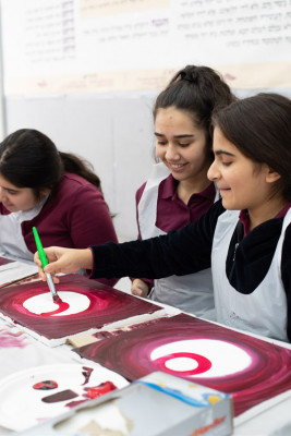 All the girls were treated to exciting Tu B'Shvat activities. The Pre1a and 1st Grades decorated special picture frames using pastels. The 1st Grade had a bonus activity of making baskets with dried fruit with Morah Pinkhasov. The 2nd-5th grades enjoyed making edible flowers with the help of our 8th-grade student, Meira Sofiev. The 6-8th grade classes participated in Tu B'Shvat Canvas Painting led by Mrs. Sharon Halali where each girl proved to have lots of artistic talent!