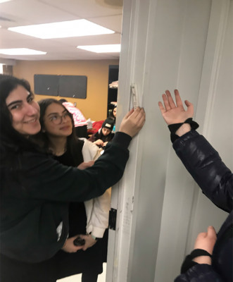 This past Monday, Ezra Academy held a special Yom Iyun for their students on the mitzvah of mezuzah. Most would think that a Yom Iyun at this time of the year would focus on a Pesach related idea such as matzah or redemption. However, the idea to focus on the topic of mezuzah came as a unique opportunity. Ezra Academy recently expanded! With the growth of their program and ensuring the class sizes remain small, they began using another floor within their current building. None of the rooms on that floor had mezuzot. As opposed to simply hanging the required mezuzot, the staff developed an amazing curriculum. Each class was taught about mezuzah, its origin, some of the halachot and of course some inspiring stories. After the learning was completed, each class went to different rooms and had the opportunity to hang the mezuzot.