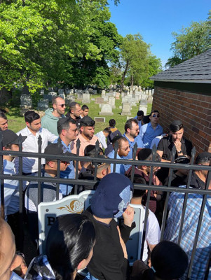 With beautiful warm weather and preparation for Shavuot on people’s minds, congregants of Congregation Shaarei Eliyahu of Forest Hills took in the sunny rays during a visit to Buffalo, New York this past week. Rabbi Yosef Akilov, mara d’atra, and his wife, Rebbetzin Natalie Akilov joined with their family and took the roughly 75 shul members on a tour of the local Jewish cemetery, Ahavas Sholem Cemetery on Pine Ridge Road in Cheektowaga, highlighted by “The Buffalo Rebbe,” the Linitzer-Sokolivker Rebbe, Rav Eliyahu Yosef Rabinowitz, zt”l, 54, the first Admor buried in New York. “Many who have visited Rav Rabinowitz’ kever have seen tremendous yeshuos and lots of miracles,” explained Rabbi Akilov. Rav Rabinowitz was a humble sage and shied away from having the title Admor used during his lifetime. Notably, Rav Rabinowitz immigrated from Kishinev, Ukraine in 1899 to the Lower East Side. During the mass exodus of Russian Jewry at the turn of the twentieth century. Nine years later, he moved to Buffalo to strengthen Jewish life at the Jefferson Street Shul. Rav Rabinowitz is a descendant of the Linitz-Slavita dynasty, a great-grandson of Rav Pinchas of Koritz, and a 1-1 student with Rav Mordechai Dov Ber Twerski, “The Hornosteipler Rebbe,” and his brother-in-law.