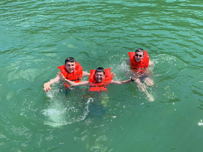 Their first evening included all that one would expect from a serene getaway. A heartwarming bonfire, enthralling games of pool, and delicious eats courtesy of Sushi Kingdom on Main Street in Kew Gardens Hills topped off the list. Erev Shabbat began with uplifting prayers, and a thrilling boating experience that included swimming on a gigantic lake! The day also included sporting activities, like volleyball.