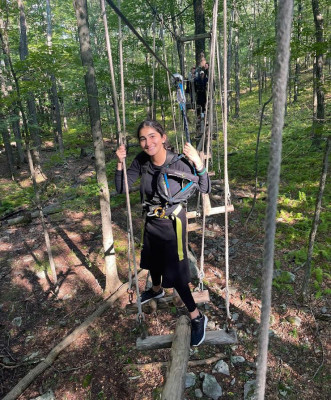 As soon as the students arrived at the SkyTop Lodge, they were led by grade to the first set of activities. Freshmen were tasked with boat building while sophomores participated in a scavenger hunt. Naomi Mordukhaev, a sophomore, appreciated how each activity allowed the girls to bond together while at the same time allowing them to work on their team-building skills. Students then participated in what many considered the highlight of the retreat. Students engaged in a ropes course activity that truly encapsulated the theme of retreat. For many students, the ropes course was new and unchartered territory. With the encouragement and positivity radiating from both grades, many students conquered their fears and walked away feeling empowered and strong. Rebecca Shaulova, a freshman, shared that “Mrs. Zerykier waited for me at every level. All the girls pushed each other, which helped me overcome my fear of heights.” Ora Khaimov, a freshman, agreed and concurred that, “At first when I climbed the ladder, I was really scared and it was so high, but with Mrs. Zerykier’s and all the girls’ motivation, I felt confident and so proud of myself.” The rest of the night was spent reflecting, relaxing, and sharing how accomplished everyone felt. Morah Balakhaneh shared how much nachat it gave her to see how “mature, deep, and real each of the students’ reflections were.”