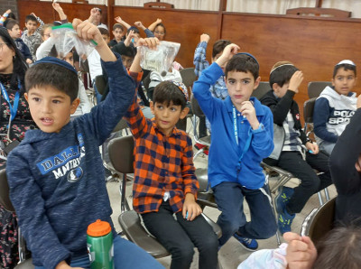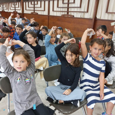 During Friday Oneg, students in grades 1-5 listened to an explanation of why we do kapparos. Rabbi Mark Landsman said that the chicken that we are saying kaparos with will be shechted and killed and we are thinking that this really should be happening to us because of all the bad deeds we’ve done, and Hashem is giving us mercy for our teshuva. Students each brough in money that they used to perfom kapparos. Viviana Olsen, grade 4 learned that “All the money that we use instead of chickens, is going to people that really need it and that we are giving this money instead of us. Because really, we know this should be happening to us instead of the chickens because of all the aveiros we have done.”