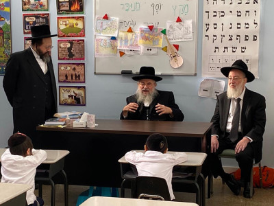 The Cheder Moshe Raya Mehamina welcomed Rav Noach Isaac Oelbaum, marah d'atrah of Khal Nachlas Yitzchak to deliver brachot to the boys. The rav was joined by menahel, Rav Meir Chaim Gutfreund, and yeshivah activist Rabbi Naftali Rosenbaum.