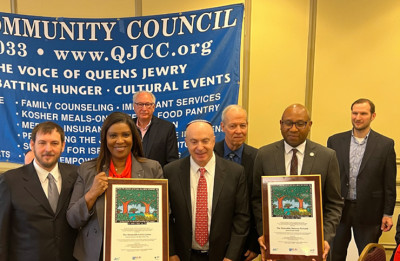 It was impressive to scan the ballroom as QJCC board members stood with their right hand raised, repeating their pledge to serve as dictated by Attorney General for the State of New York Letitia “Tish” James, co-recipient of annual Dr. Martin Luther King Jr. award. “This organization helps the poor, the hungry, visits the homebound and the elderly, and fights for the Jewish community. They fill the air with culture and music, while helping keep Jewish institutions and members of the community safe,” praised James. “Anti-Semitism is a poison that is ancient, resilient, and a deadly form of poison that all of us must fight shoulder to shoulder, arm in arm, with no space between us. But our wisdom is older and when we stand together, we can overcome all types of hate.”