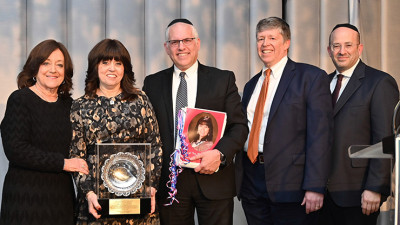 The final presentation of the evening recognized Rabbi Menacham Rottenberg z”l, who served as Executive Director of YCQ, beginning in 1963. Former principals, including Rabbi Aaron Brander and Mrs. Judy Lebovits, described how instrumental Rabbi Rottenberg was in shaping what YCQ is today. To recognize Rabbi Rottenberg and his dedication to the Yeshiva, the main entrance to YCQ was inaugurated as Shaar Menachem. It is a fitting tribute to Rabbi Rottenberg, who opened the doors of success for so many. Rabbi Rottenberg’s family was presented with a replica of the plaque that is displayed at the entrance of the school, which will forever serve as a testament to Rabbi Rottenberg’s legacy.