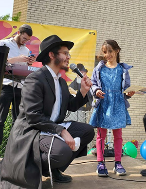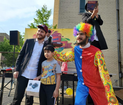 Following the parade, there was a large gathering that included the reading of Torah passages, an inspiring Jewish story, a fantastic juggling show, and raffles of wonderful high-ticket prizes. The children then had the opportunity to enjoy the family fun rides and activities brought to Forest Hills for the celebratory occasion, including an exciting 22-foot slide, a dizzying obstacle course, a number of bounce houses of all shapes and sizes, as well as entertaining carnival games prepared by the talmidim of the local Chabad yeshivah.