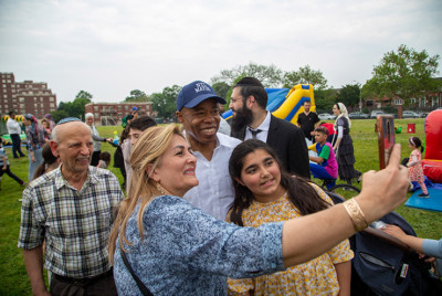 The presence of Mayor Eric Adams added an extra layer of excitement to the Jewish Cultural Carnival. Mayor Adams not only addressed the crowd, expressing his appreciation for the rich Jewish heritage and the importance of cultural events in fostering unity, but he also actively engaged in the festivities. Mayor Adams took a ride on the slide, played carnival games, and posed for pictures with many guests, creating unforgettable memories for both the attendees and himself.