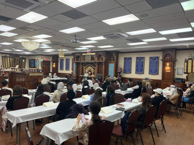 A remarkable 70 women turned out for a riveting lecture by Rebbetzin Malka Gavrielov and accompanying dinner in the main sanctuary of the Beth Gavriel Center of Bukharian Jews. Such a showing exemplifies the commitment of the Bukharian Jewish community to adhere to the Jewish religious concept of domestic harmony and good relations between husband and wife. The audience heard from the rabbanit about the beauty of raising a family with one’s spouse in a home filled with peace and tranquility. The program was aptly sponsored by the hosting shul and its women’s ritual bath, Mikvah Be’er Miriam & Yaffa.