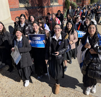 In a remarkable display of unity and commitment, members of the Yeshiva Sha'arei Zion Girls High School recently participated in the March for Israel held rally in Washington, D.C. The event brought together many of the YSZ girls, Mrs. Zerykier, menahelet; several faculty members; Rabbi Avraham Fridman, principal, YSZ Elementary; some of his eigth grade students; and members of the Bukharian community, collectively representing our community's unwavering support for Israel.