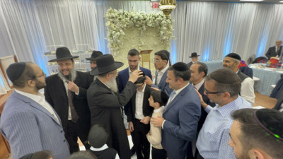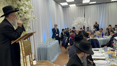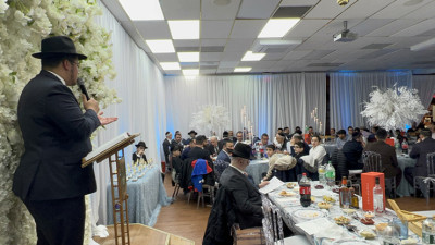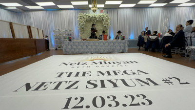 Beth Gavriel’s flourishing Netz Minyan held its second Mega Siyum this past Sunday evening, December 3, in the shul’s main ballroom. Stunning drapery gave the space the royal atmosphere appropriate for such an affair that included surprise remarks from Rav David Yosef, shlit”a, chief rabbi of Har Nof. The lavish dinner saw 18 men complete Masechet Sotah, with at least one making his first siyum ever!