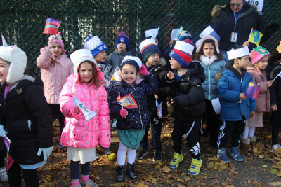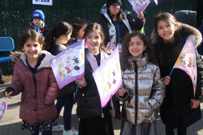 The day started with each class assembling around the perimeter of the school yard. Early Childhood students proudly wore their Torah hats, and students waved their special flags, eagerly anticipating the arrival of the sefer Torah. After everyone was in place, the Torah arrived.