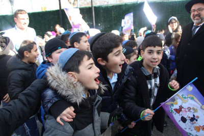 As the glistening new Sephardic sefer Torah made its way around the YCQ yard, surrounded by the existing Ashkenazi sifrei Torah and over 1,000 students, faculty, and community members, a special feeling of achdus was in the air. The sifrei Torah were paraded around under a beautiful chupah, as everyone cheered its arrival. Throngs of students danced to the soundtrack of festive music as the Torah was displayed on a beautiful sunny day.