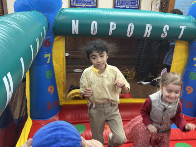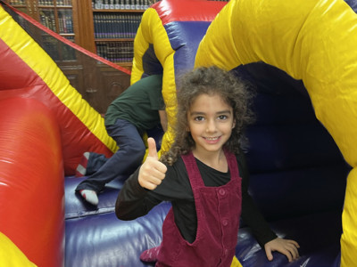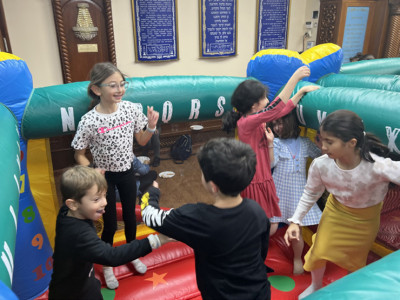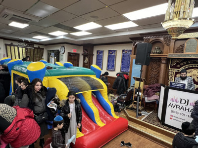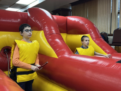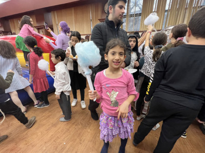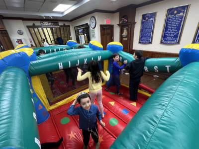 The afternoon continued in the main hall with fresh pizza, delicious donuts, yummy cotton candy, an interactive photo booth, tons of bounce houses and inflatables for all ages, and the energy of DJ Avraham.