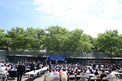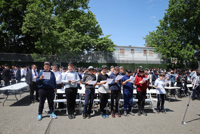 On Monday, June 3, something extraordinary took place in Kew Gardens Hills. Seventh and eighth grade boys from eight Queens yeshivot filed into the Yeshiva of Central Queens (YCQ) sunny yard. Rabbi Ophie Nat, eighth grade rebbi at YCQ, conceived the idea of having a Lev Echad event, and coordinated the event with Jacob Grossman, YCQ’s Director of Student Activities.