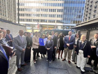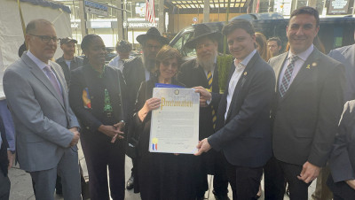 The New York City Council Jewish Caucus, chaired by Eric Dinowitz, with members Julie Menin, Lynn Schulman, Lincoln Restler, Inna Vernikov, and Kalman Yeger, joined Chabad Lubavitch Youth Organization at the City Hall sukkah for a holiday celebration honor the legacy of Rabbi Shmuel Butman OB'M, of the Chabad Lubavitch Youth Organization on Tuesday, October 22, during Chol HaMoed. The sukkah at the City Hall entrance on Broadway and Murray Street welcomed dignitaries at a touching event arranged by Pesach Osina of the Speaker's Community Engagement Division. Dep. Chief Richie Taylor, Israel Consul General Ofir Akunis, Judge Ruchie Freier, and Menashe Shapiro of the mayor's office rounded out the long list of attendees.