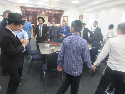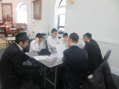 Yeshivah boys aged 11 and up participated in a Chol HaMoed learning program at Tov Bet Midrash. The morning sessions led by Rabbi Shalom Khaimov included a hot breakfast of hot bagels, eggs, and ice coffee. A riveting hour long learning session followed.